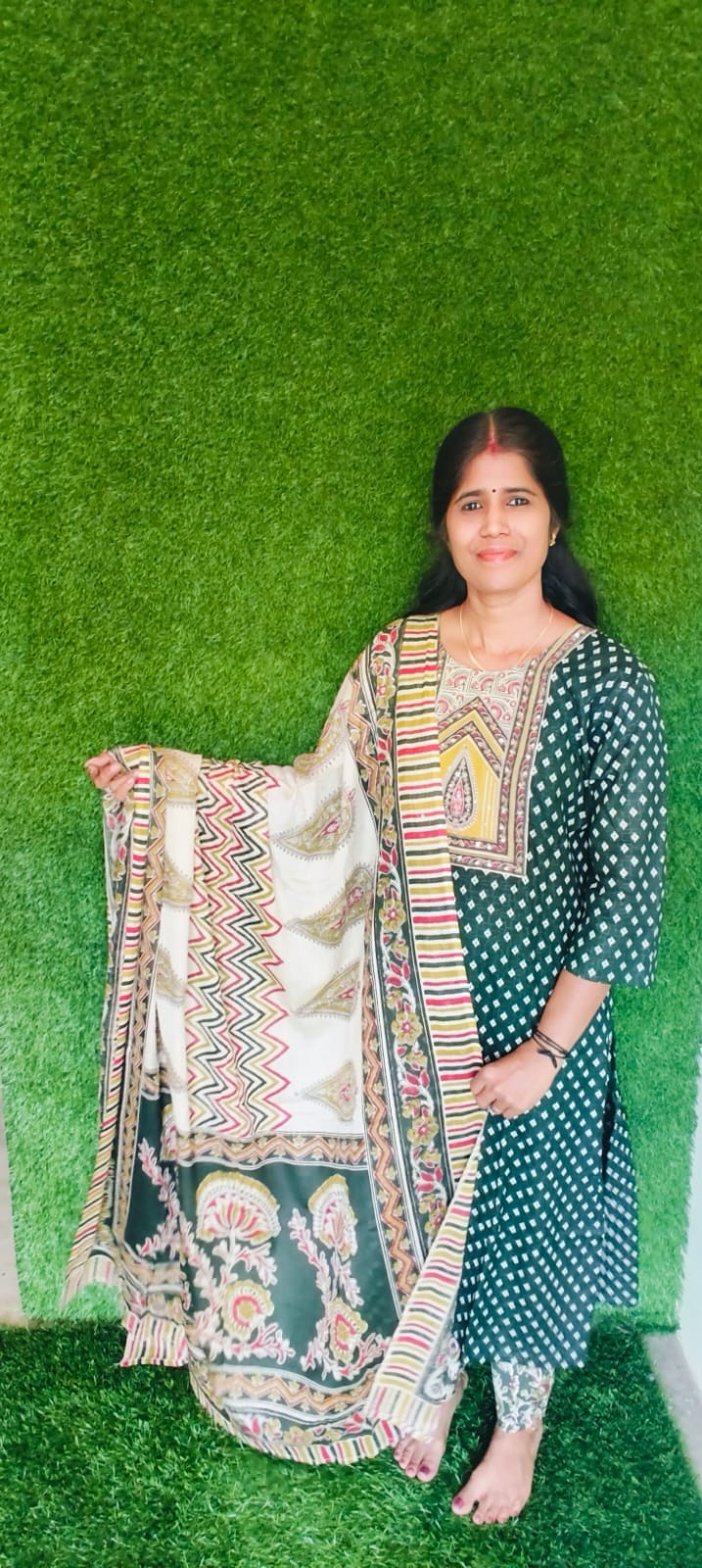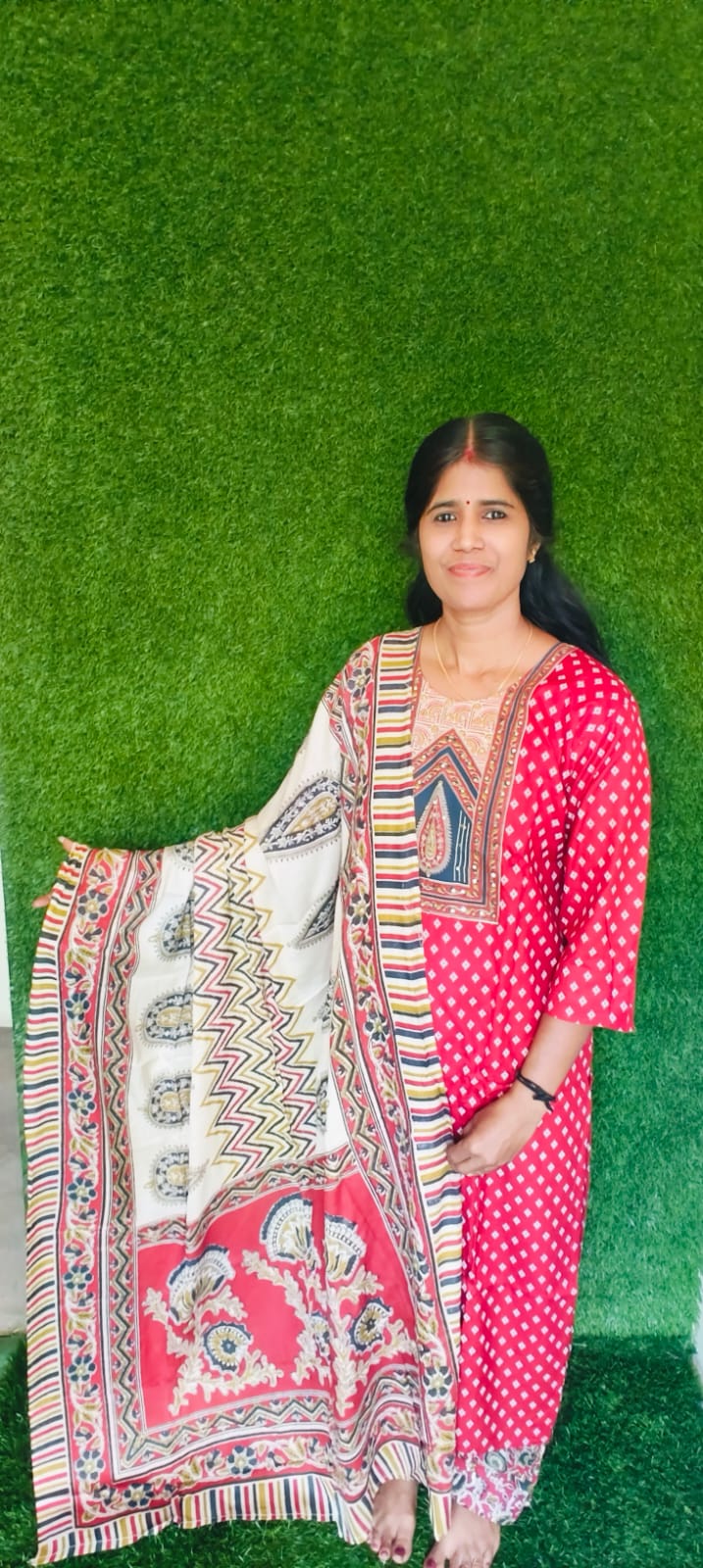 Sleeve length : 16 Top length : 46 with lining Bottom: kalamkari Bottom length: 38