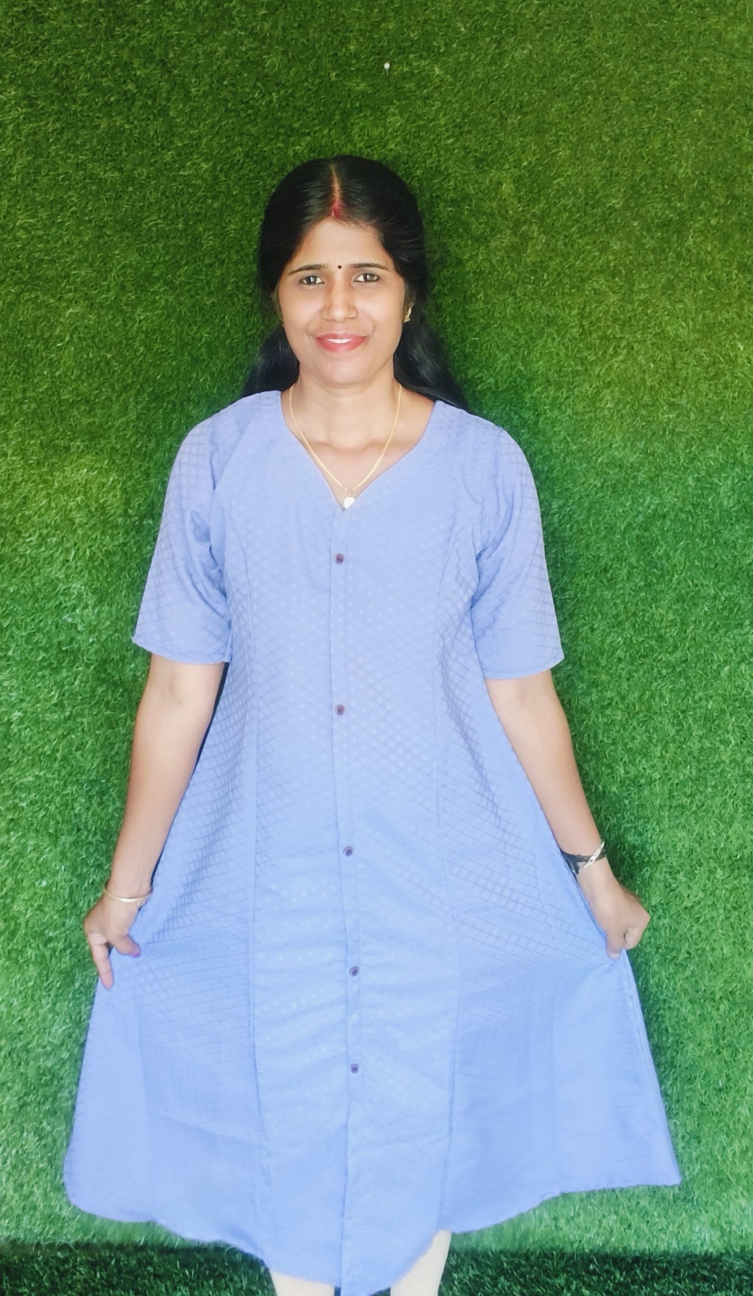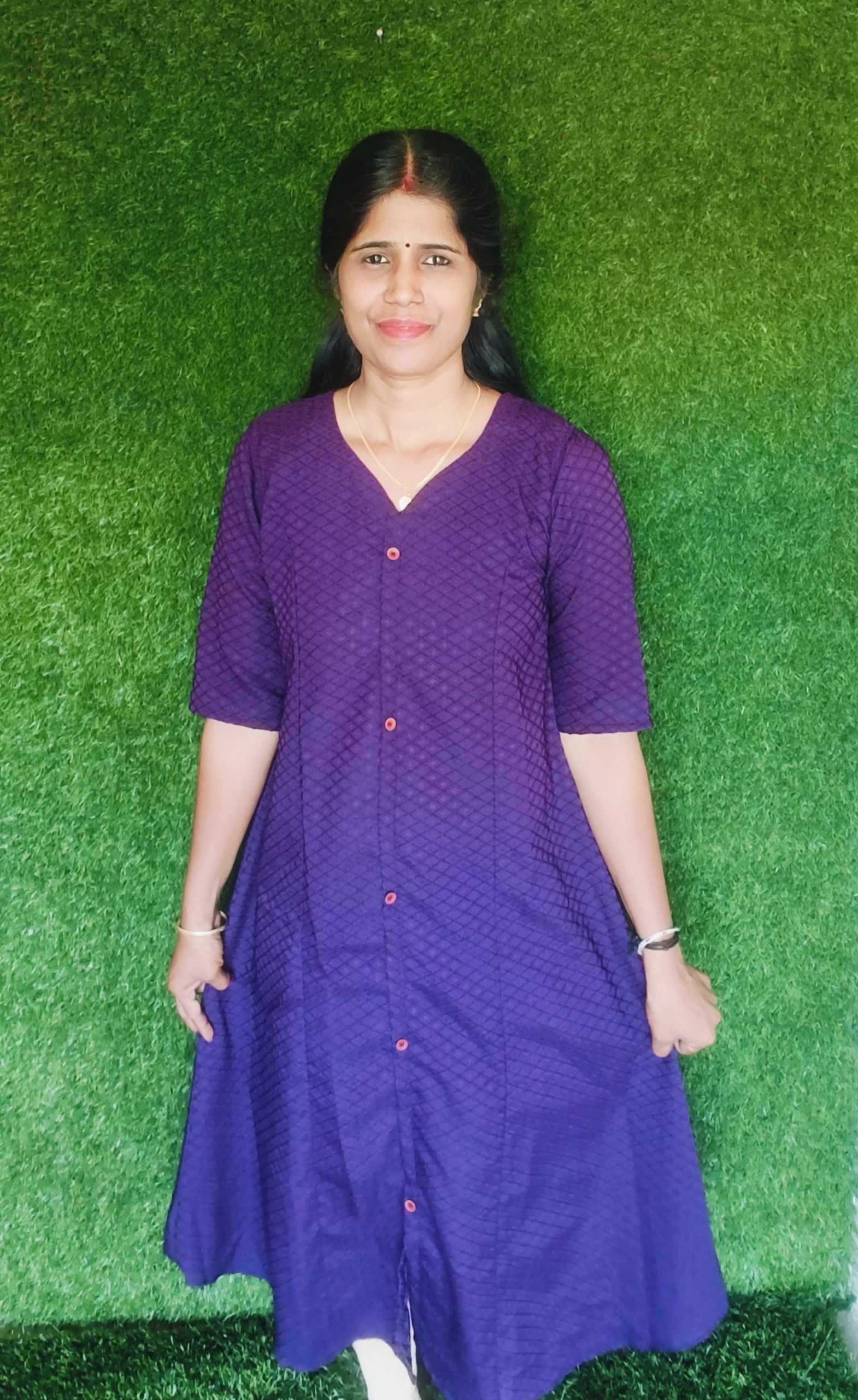 Elegant A-line kurti made from soft dobby lycra fabric for a comfortable and stylish look. Designed with a flattering princess cut and V-neck, featuring center front buttons and a center slit for easy movement. Perfect for daily wear with a simple yet graceful finish. ✨