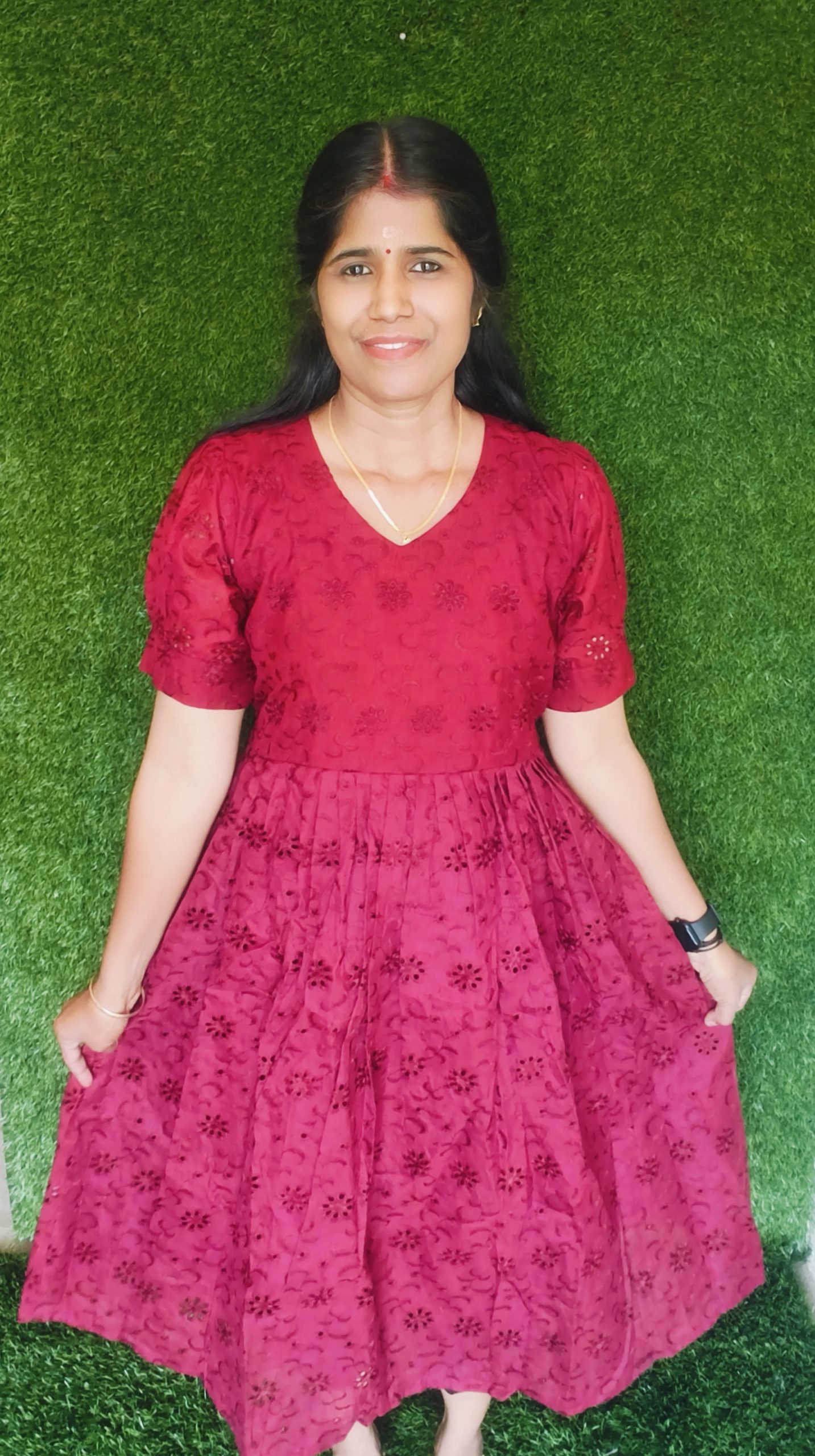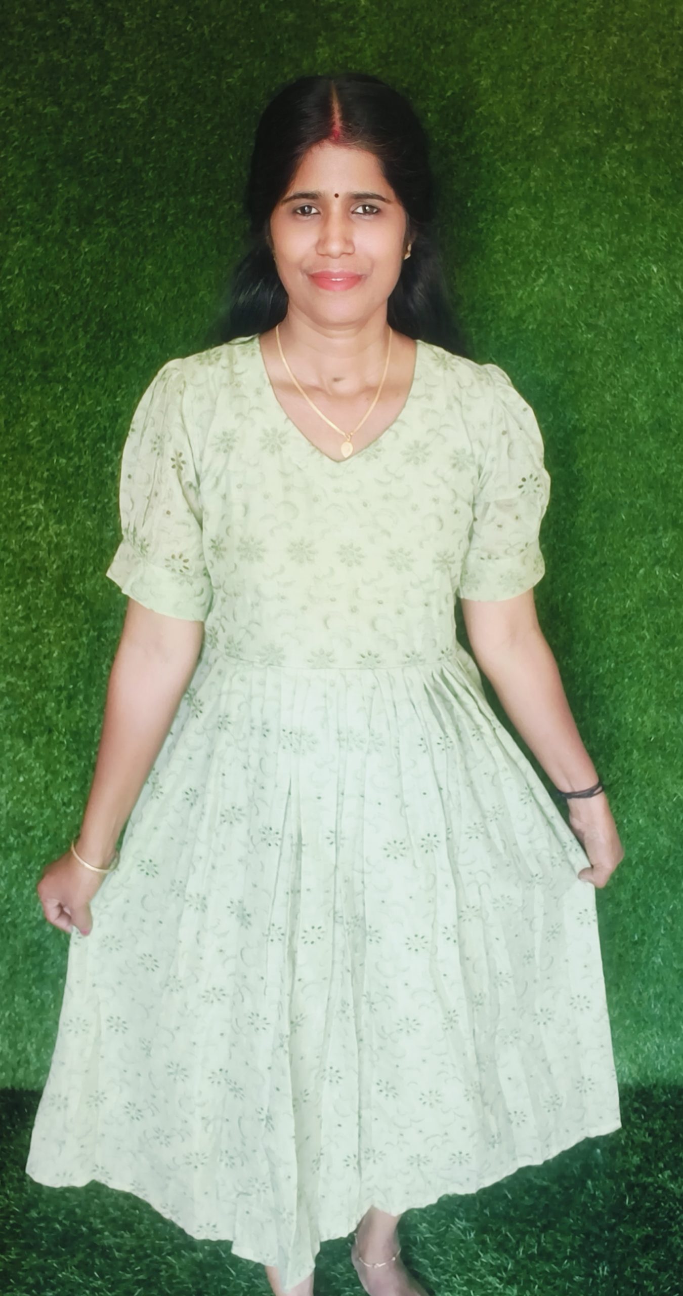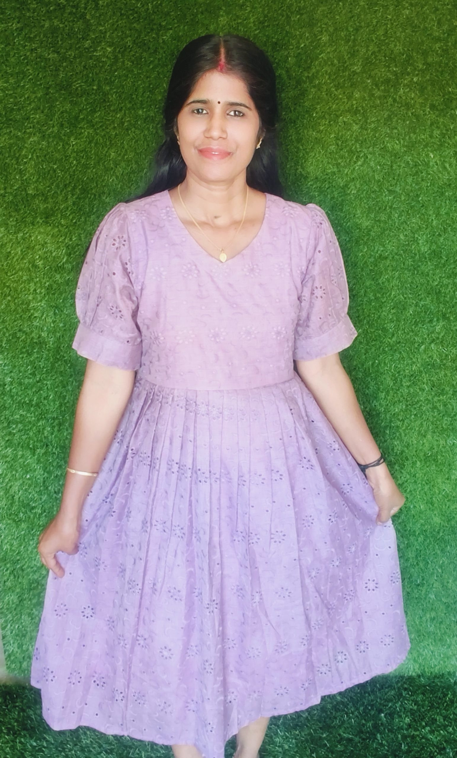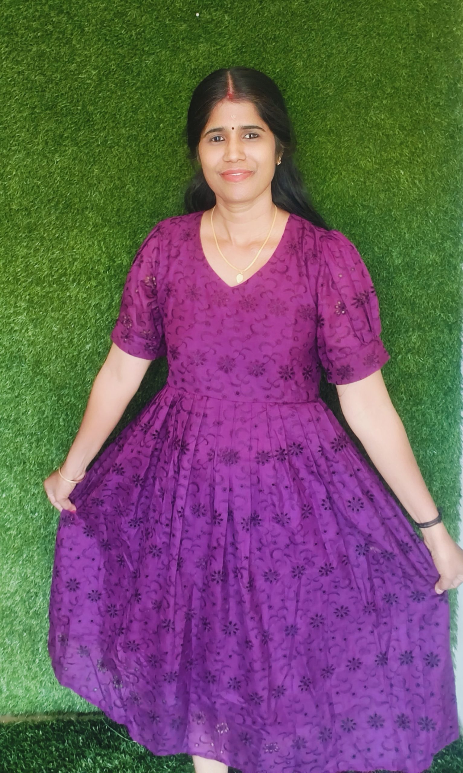 Elegant and comfortable, this Cotton Hakoba frock features beautiful embroidery, stylish puff sleeves, and a soft inner lining for all-day comfort. Made from breathable cotton fabric, it offers a perfect blend of grace and ease—ideal for casual outings, festive occasions, and special gatherings.